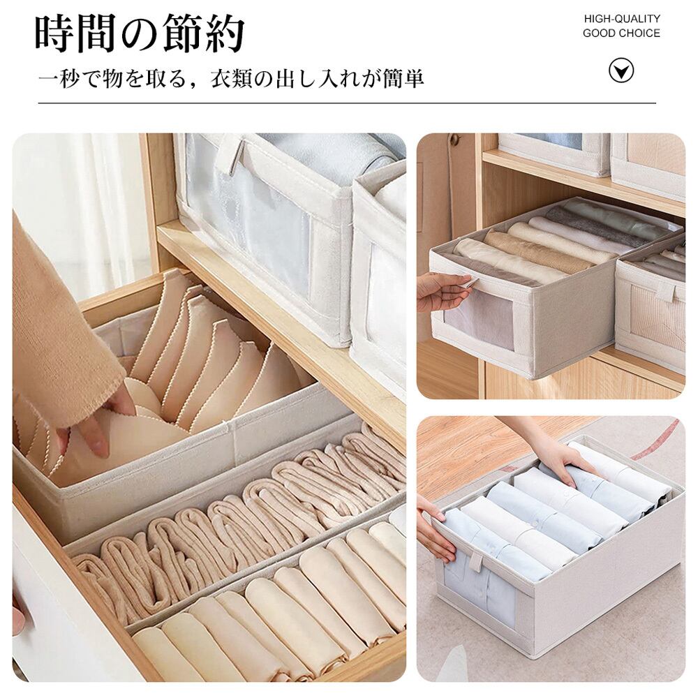 【耐久性UP&折り畳み】オックスフォード布の生地は、仕切って収納しやすいし、下着の型崩れも防ぎます。収納ボックスはコンパクトで、使わない時も折りたたんで収納できます。